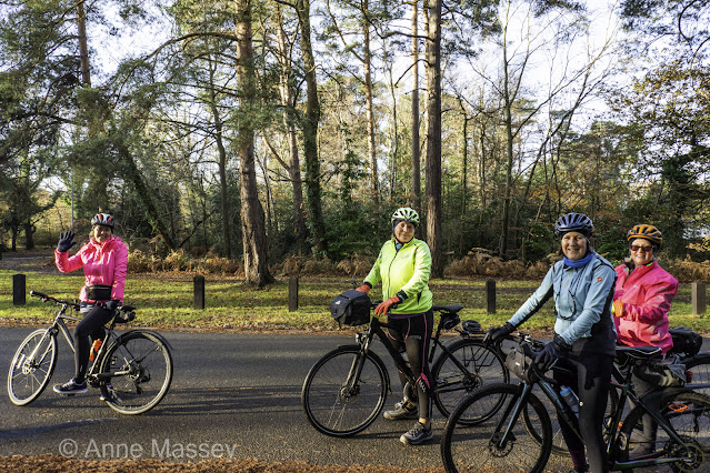 We joined the Easthampstead Road next, which we dont normally use, but best way to get to Bracknell. A new surface, which was horrible. Really hard work resisting against the tyres. Then along West Road, around the edge of Downshire Golf course and a lot of wiggling through cyclepaths in Great Hollands area of Bracknell. I had the route on my Garmin from a while ago, otherwise I would have been totally lost. Talking of lost..... we lost Jeanette and Martina for a few minutes. 😂
