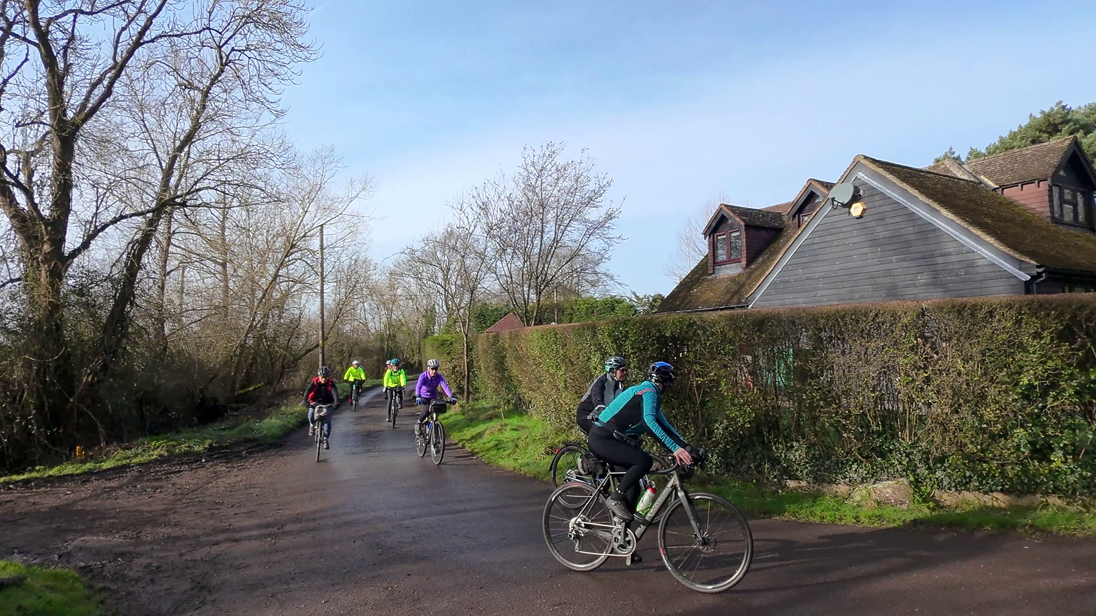 | Drone in follow mode, as we peddled along the quiet Westley Mill Lane. |